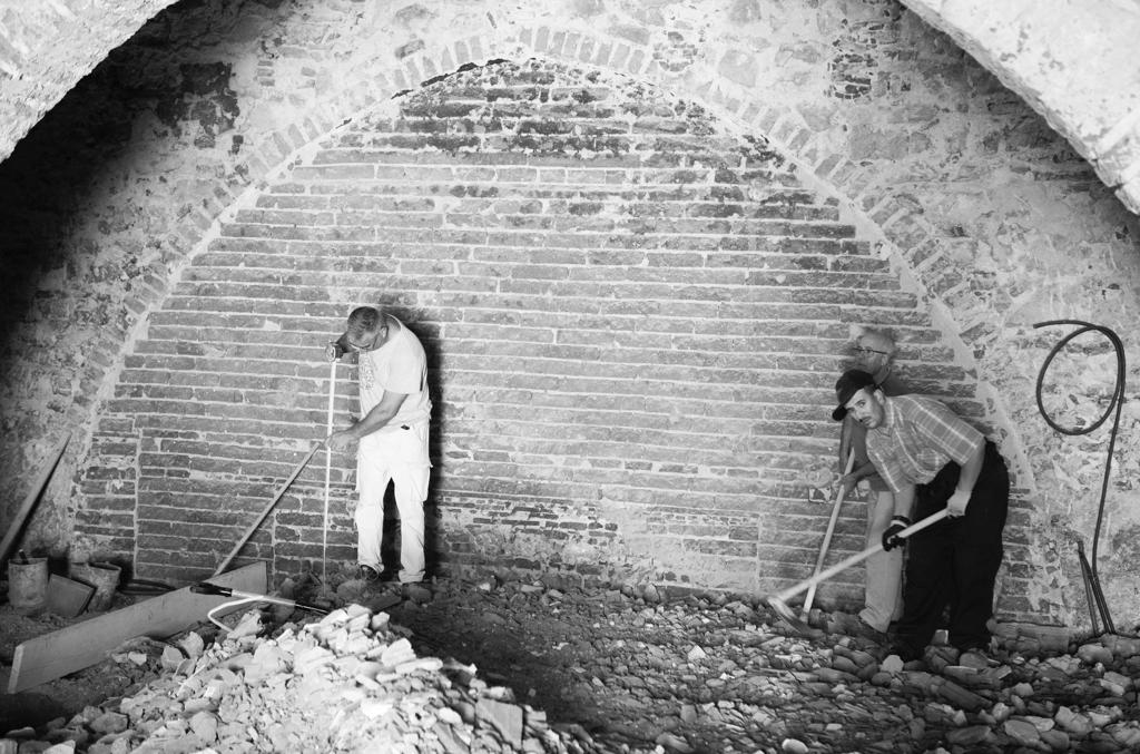 Aquando da limpeza do espaço, por parte da proprietária, cuja datável de localizado no centro histórico de Évora (classificado como Monumento Nacional) iniciaram-se obras: remoção dos tectos falsos, revestimentos desadequados, modernização das instalações eléctricas, de águas e esgotos, etc.