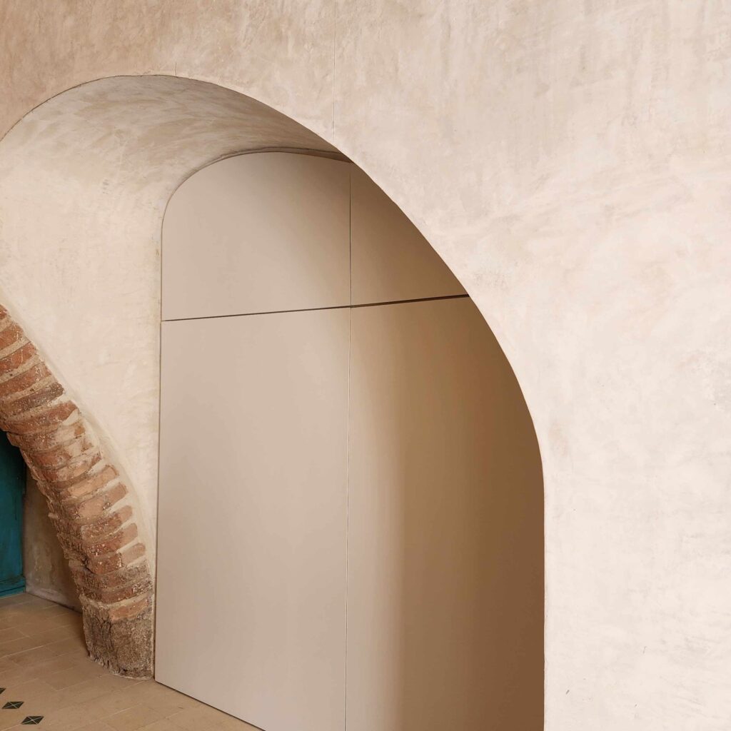 A meio do processo de limpeza, o CRU Atelier entrou em cena, instruindo vários processos camarários e patrimoniais, acompanhando a obra, comunicando com o constructor e com a proprietária e propondo soluções técnicas e práticas compatíveis com o sistema constructivo existente – agamassas que permitem as trocas gasosas, a sua preservação e durabilidade – assim como a sua integração estética, que, na verdade, mais se focou no desafogo do espaço, de encontro ao desígnio da proprietária, pois este já possuía tudo para constituir um belo, seguro e confortável ambiente. Ainda como desígnio da proprietária, havia o desejo providenciar a utilização do espaço a utilizadores com mobilidade reduzida, tendo-se reconstruido a instalação sanitária para o efeito.